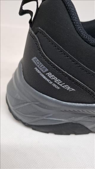 Zapatillas de montaña en color negro con detalles en gris para un estilo sobrio y versátil. El acabado AquaRepellent repele el agua y evita que la humedad penetre en el interior del calzado durante las rutas al aire libre.